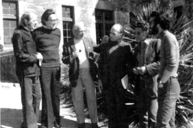 Left to right: Gilles Deleuze, Jean-François Lyotard, Maurice de Gandillac, Pierre Klossowski, Jacques Derrida, and Pautrat.
