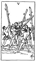CONCLUSION: Egotism, positive speech, contention, persuasion, suggestion, hot speech, demonstration (e.g. of love or desire); pushing power; all this may lead to trickery, to competition perhaps, and to struggle for riches certainly; it means speaking and thinking to such a self-centred way, that no notice is taken of other people's standpoint; consequently clashing of opinions; sometimes it may allude to gold and presents, but to the promise rather than to the fact. There is little or no evil in this card. At most it may denote stupid and childish persistence in one's own personal opinion, e.g. wishes. It has something sunny in it and is good for health and wealth in a general way, promoting both, but it is not 'riches' in itself.